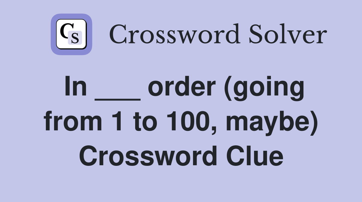 In order (going from 1 to 100 maybe) Crossword Clue Answers