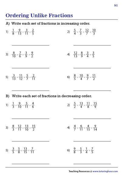 Ordering Fractions With Unlike Denominators Worksheet Printable Word