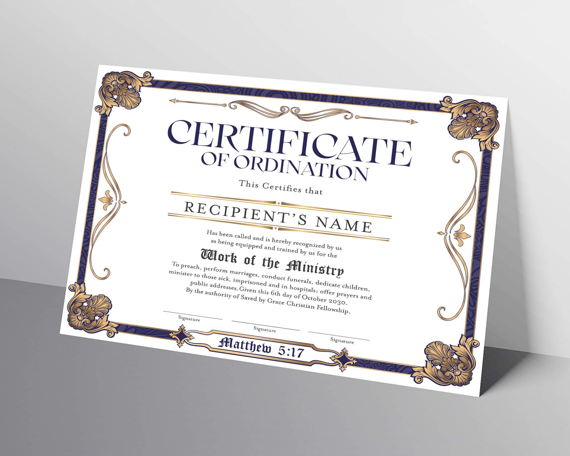 DIY Ordination Certificate Template Ordained Certificate for Minister