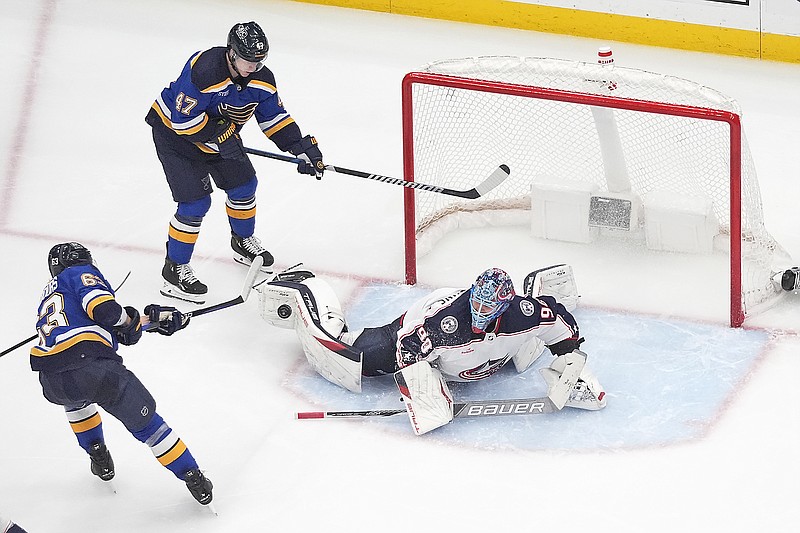 Merzlikins makes 21 saves as Blue Jackets blank Blues 1 0 Fulton Sun