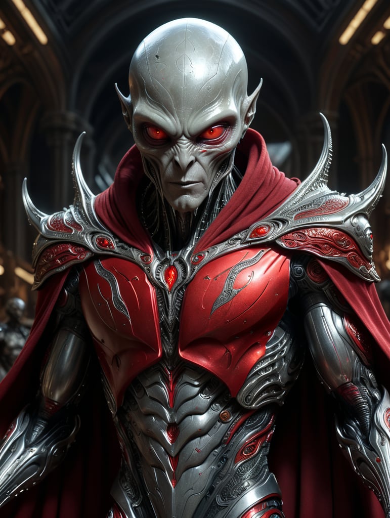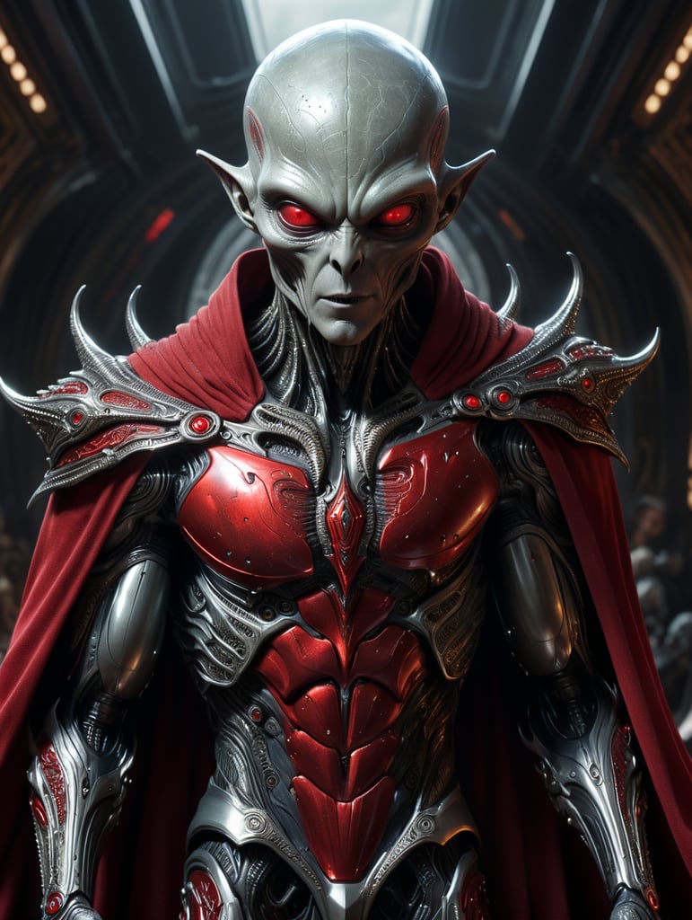 Premium Free ai Images sleek alien silver body red cape wisdom
