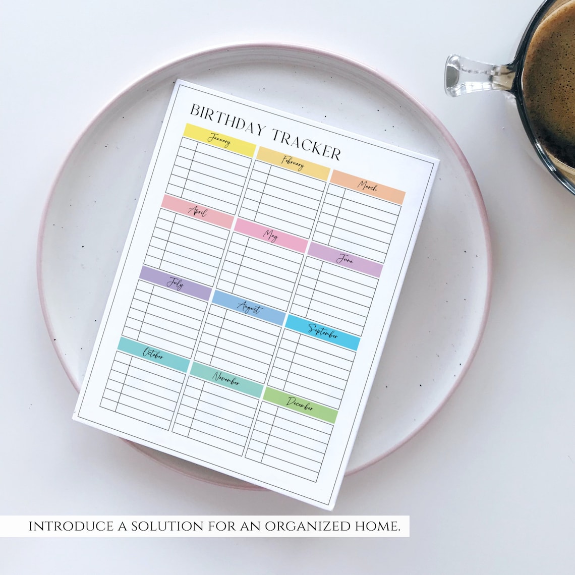 Editable Birthday Tracker Template: Printable Reminder Sheet (digital