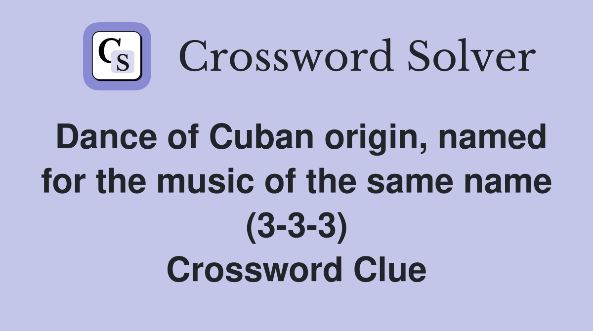 Dance of Cuban origin named for the music of the same name (3 3 3
