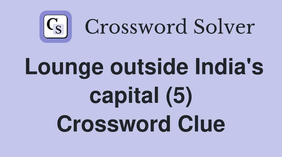 Lounge outside India #39 s capital (5) Crossword Clue Answers Crossword