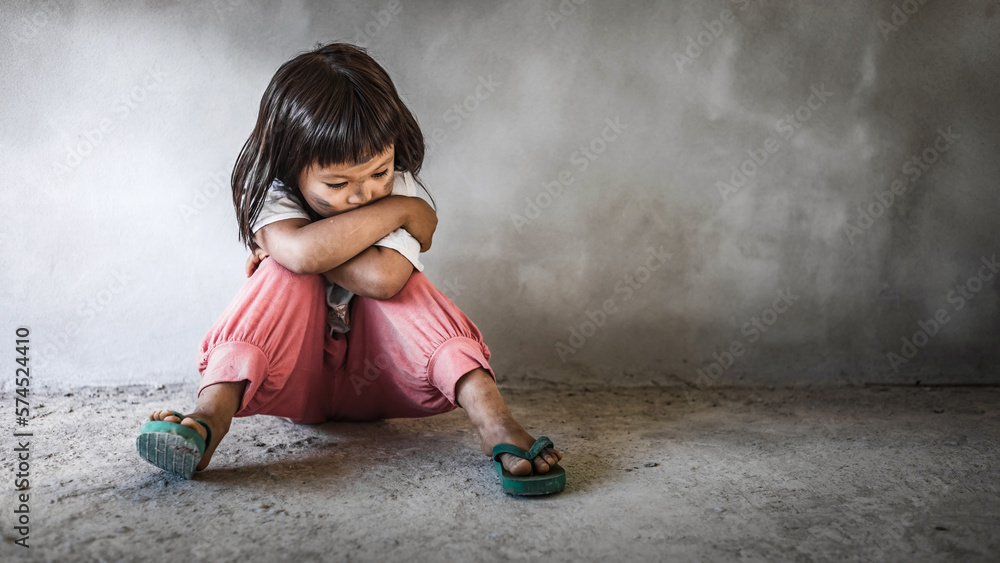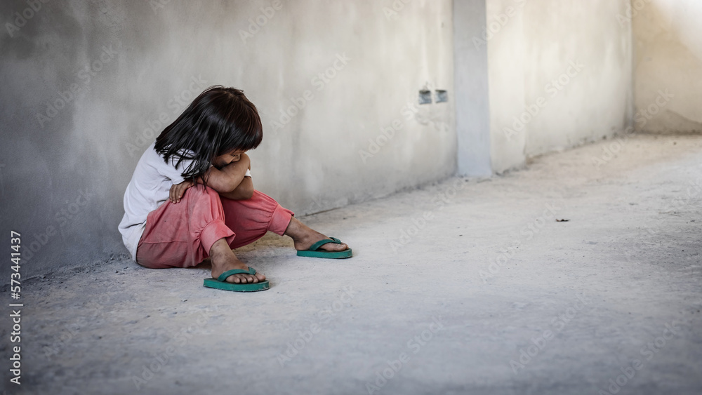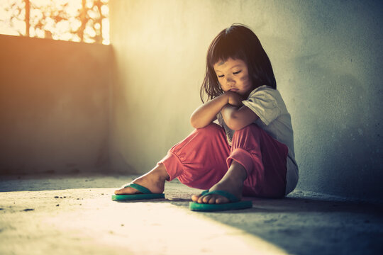 Helpless Little Girl Sitting On Floor Stock Photo (Edit Now) 1206584866
