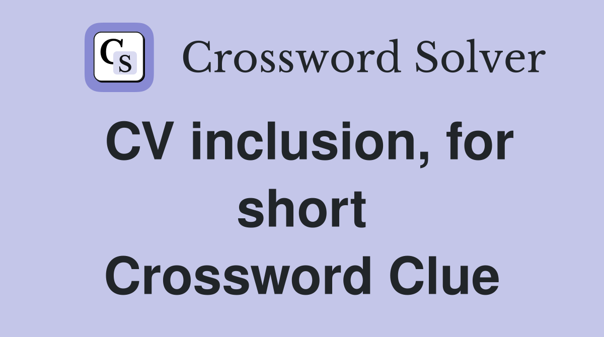 CV inclusion for short Crossword Clue Answers Crossword Solver