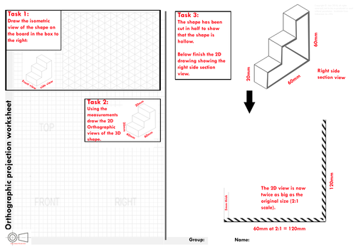 Isometric Orthographic Projection and Section views A3 Worksheet AQA