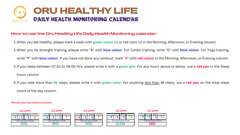 How To Use The Oru Healthy Life Daily Health Monitoring Calendar PDF