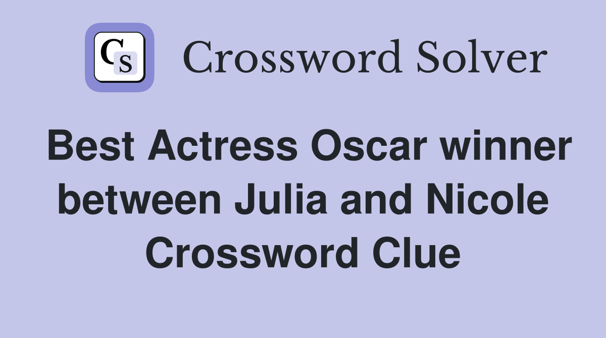 Best Actress Oscar winner between Julia and Nicole Crossword Clue
