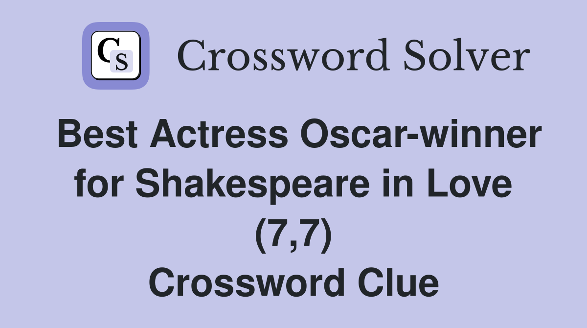 Best Actress Oscar winner for Shakespeare in Love (7 7) Crossword