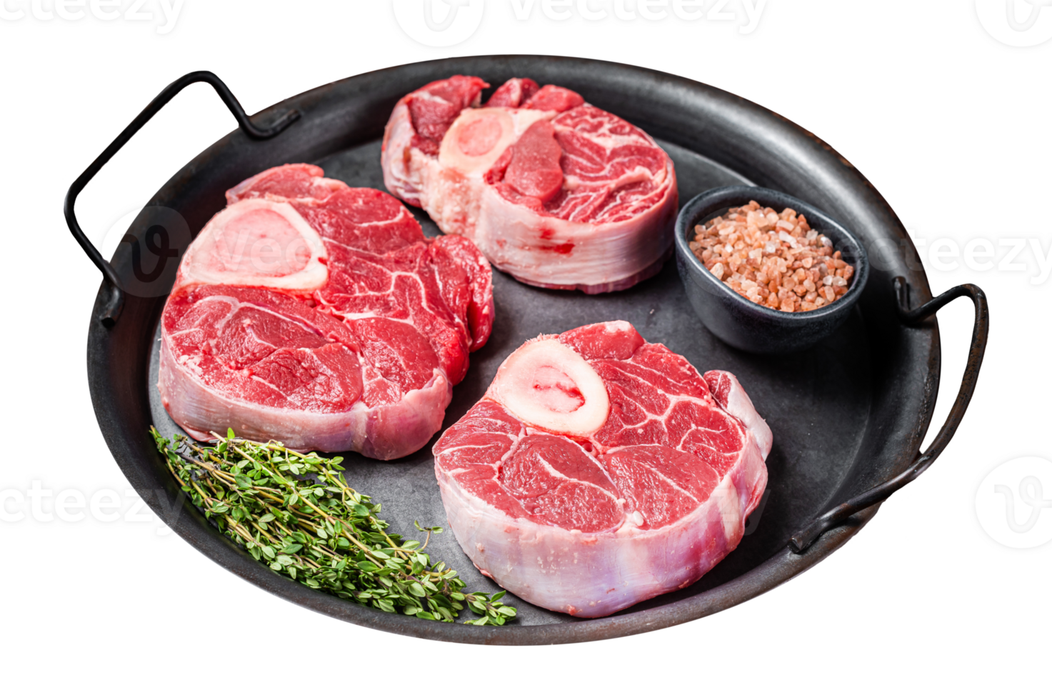 Raw Osso buco Veal shank steak meat Ossobuco in steel tray Dark