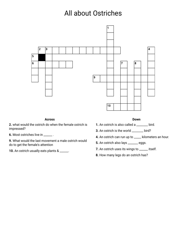 About Ostriches Crossword Puzzle Worksheet Activity Fun When Done
