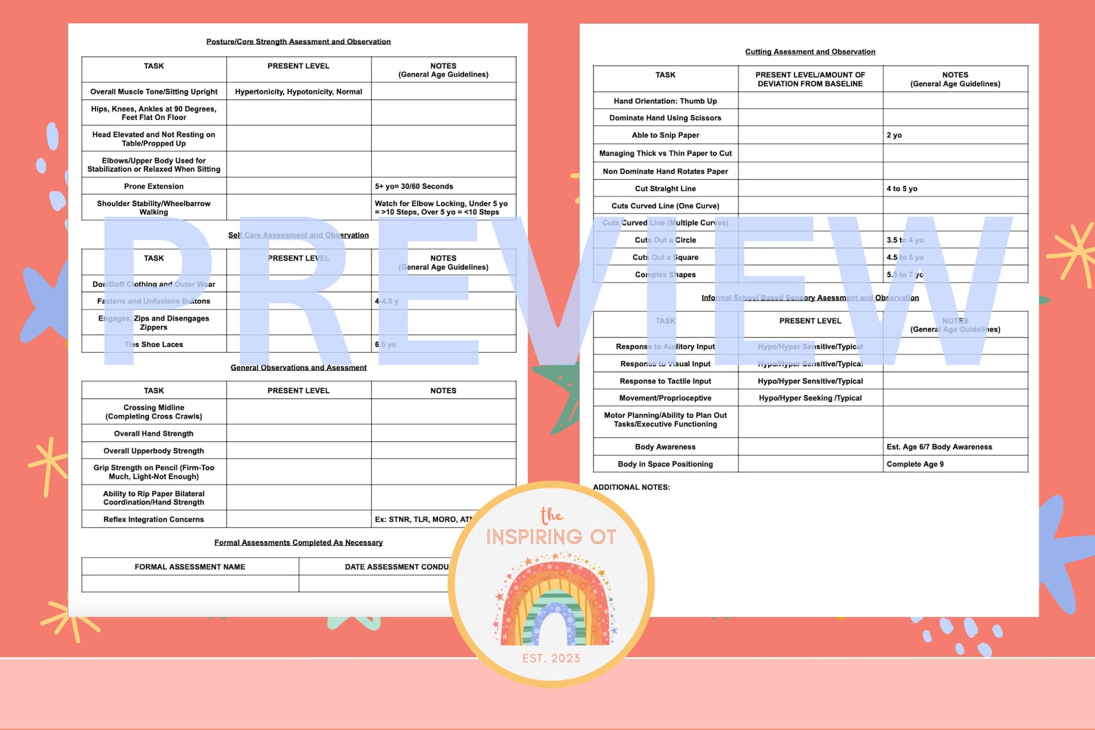 Pediatric OT Evaluation Template by OT With Kait TPT