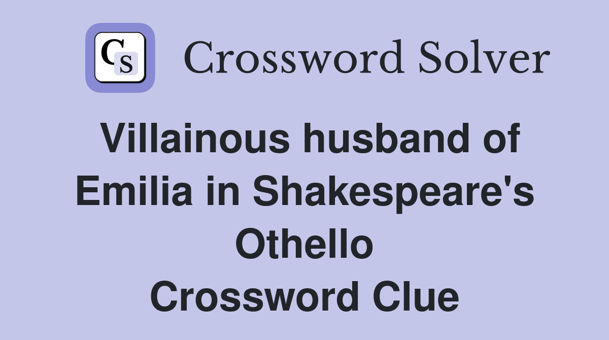 Villainous husband of Emilia in Shakespeare #39 s Othello Crossword Clue