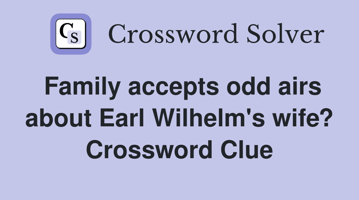 Family accepts odd airs about Earl Wilhelm #39 s wife? Crossword Clue