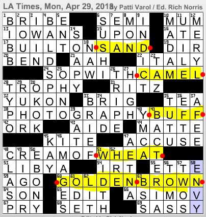 L A Times Crossword Corner: Monday April 29 2013 Patti Varol