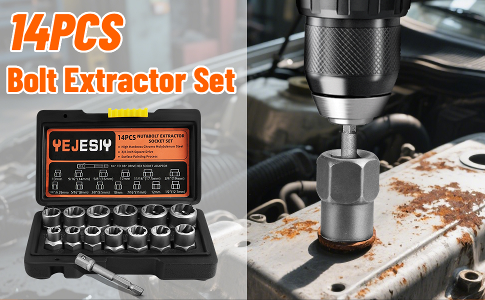 Yejesiy 14PCS Premium Bolt Extractor Kit Stripped Bolt Extractor