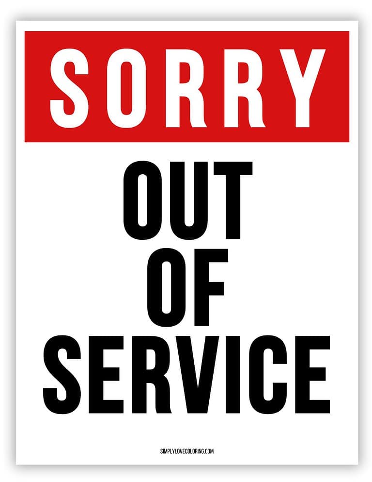 Out of Service Printable Sign (Free PDF Download) Simply Love Coloring