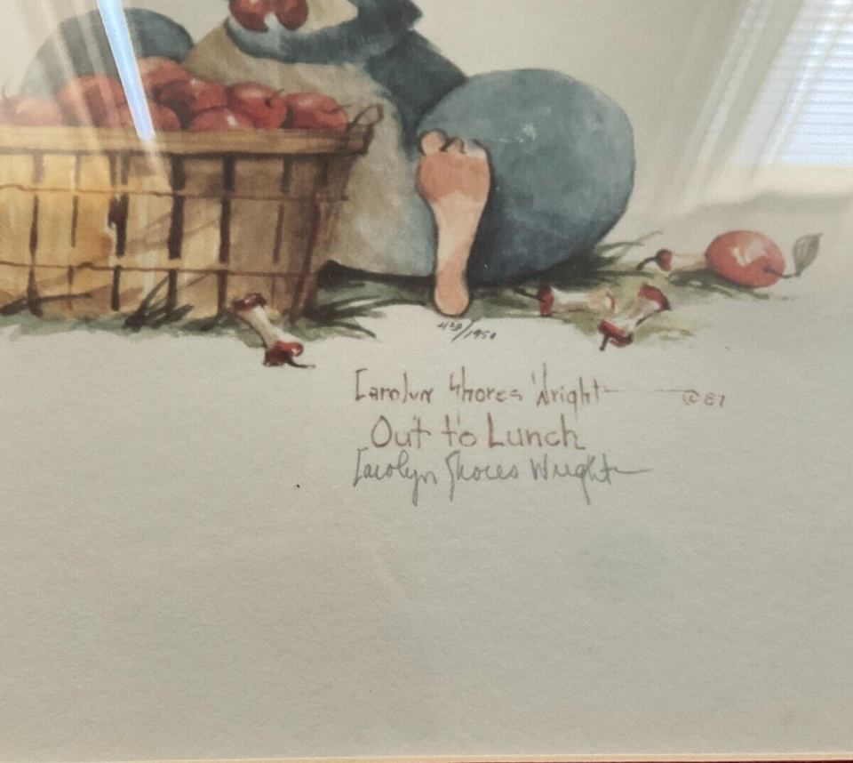 Carolyn Shores Wright hand signed print quot Out to Lunch quot Framed numbered