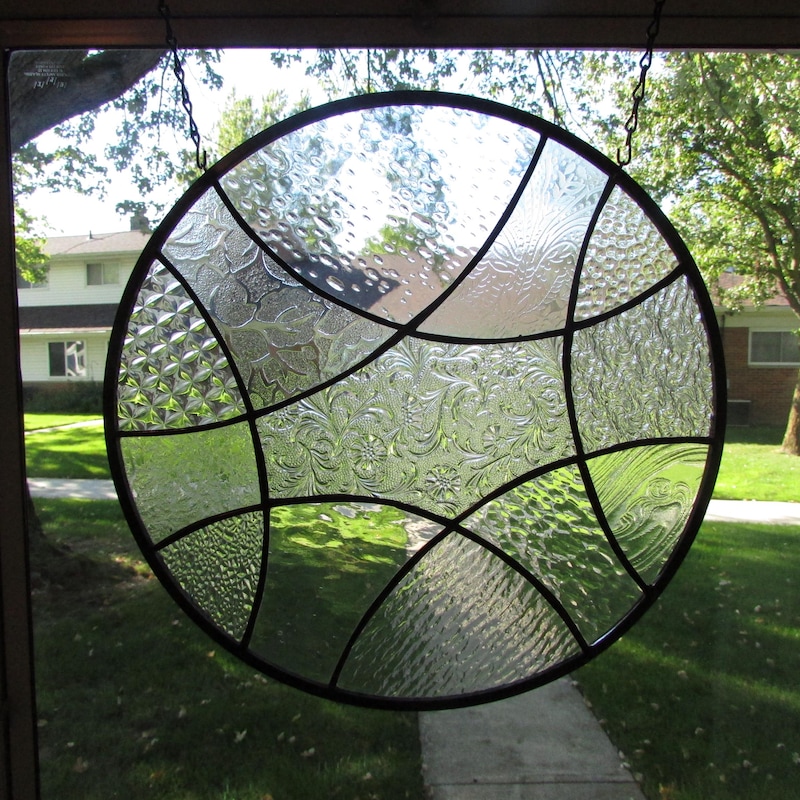 Handcrafted stained glass panel Clear Octagon Beveled window panel 20