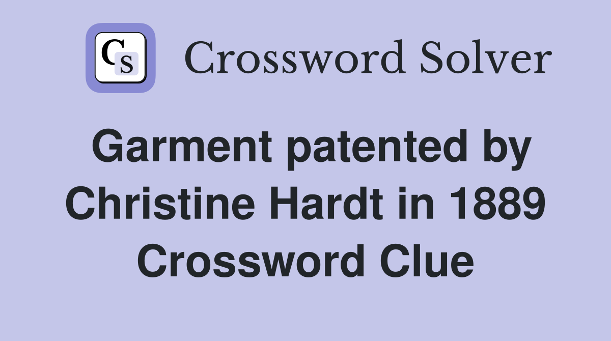 Garment patented by Christine Hardt in 1889 Crossword Clue Answers