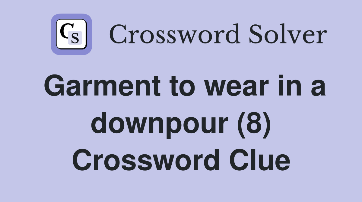 Garment to wear in a downpour (8) Crossword Clue Answers Crossword