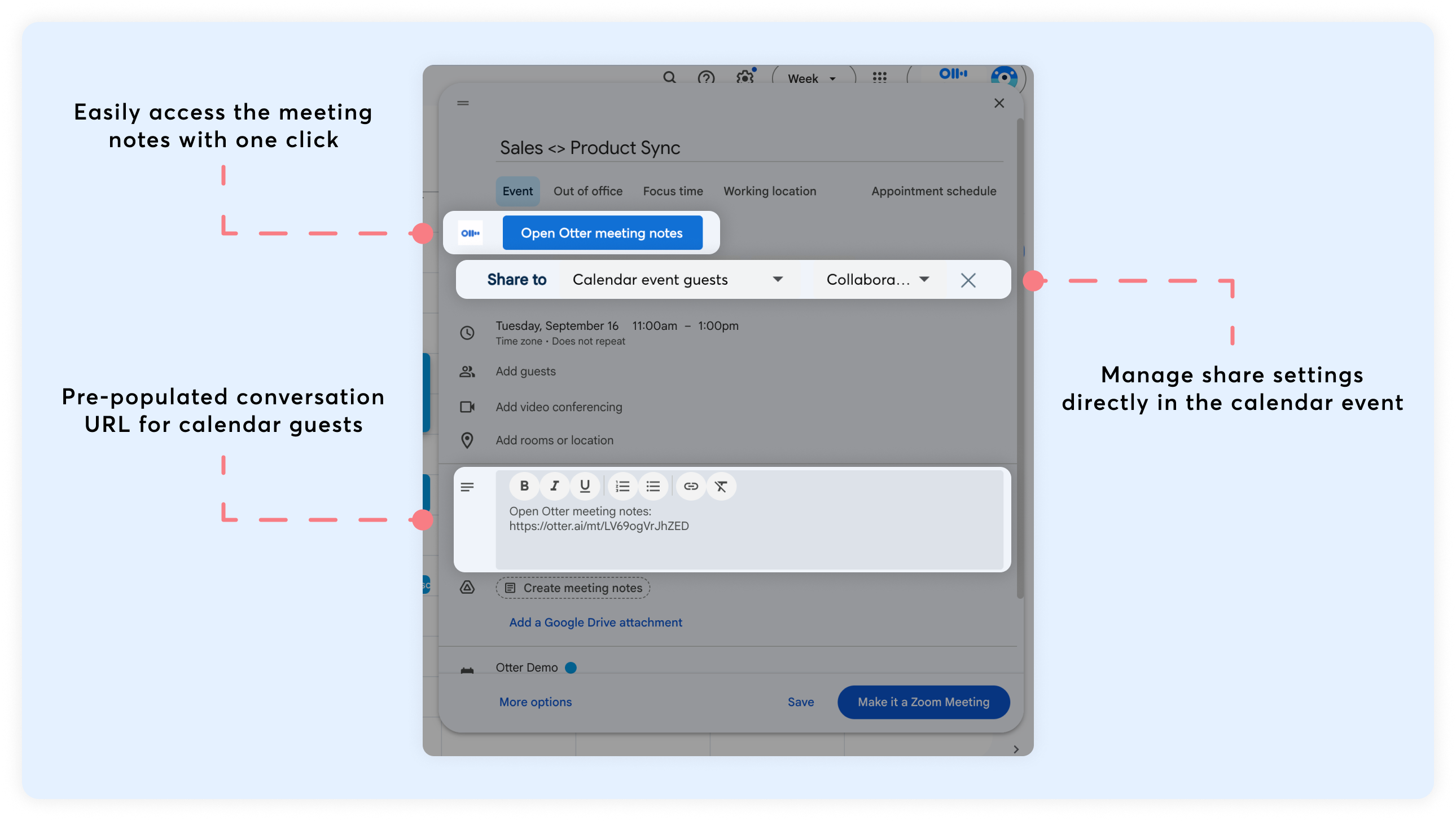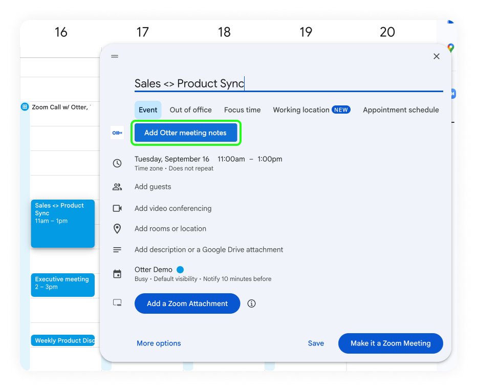 Add Otter meeting notes to Google calendar events Help Center