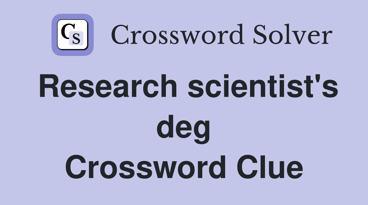 Research scientist #39 s deg Crossword Clue Answers Crossword Solver