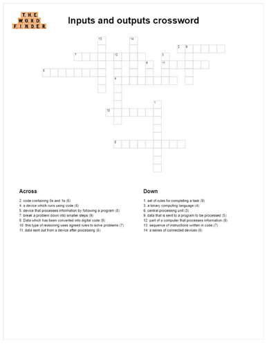 Inputs and outputs crossword Teaching Resources