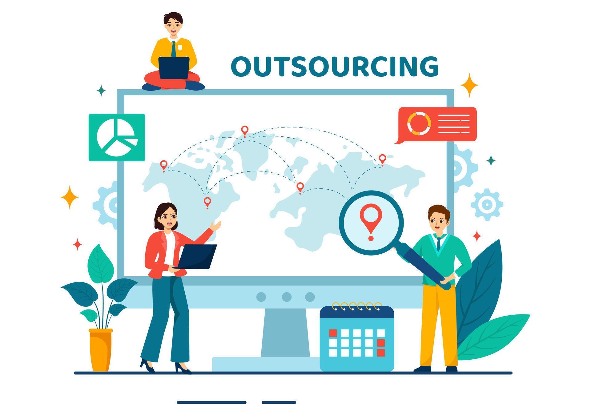 outsourcing negocio vector ilustración con idea de trabajo en equipo
