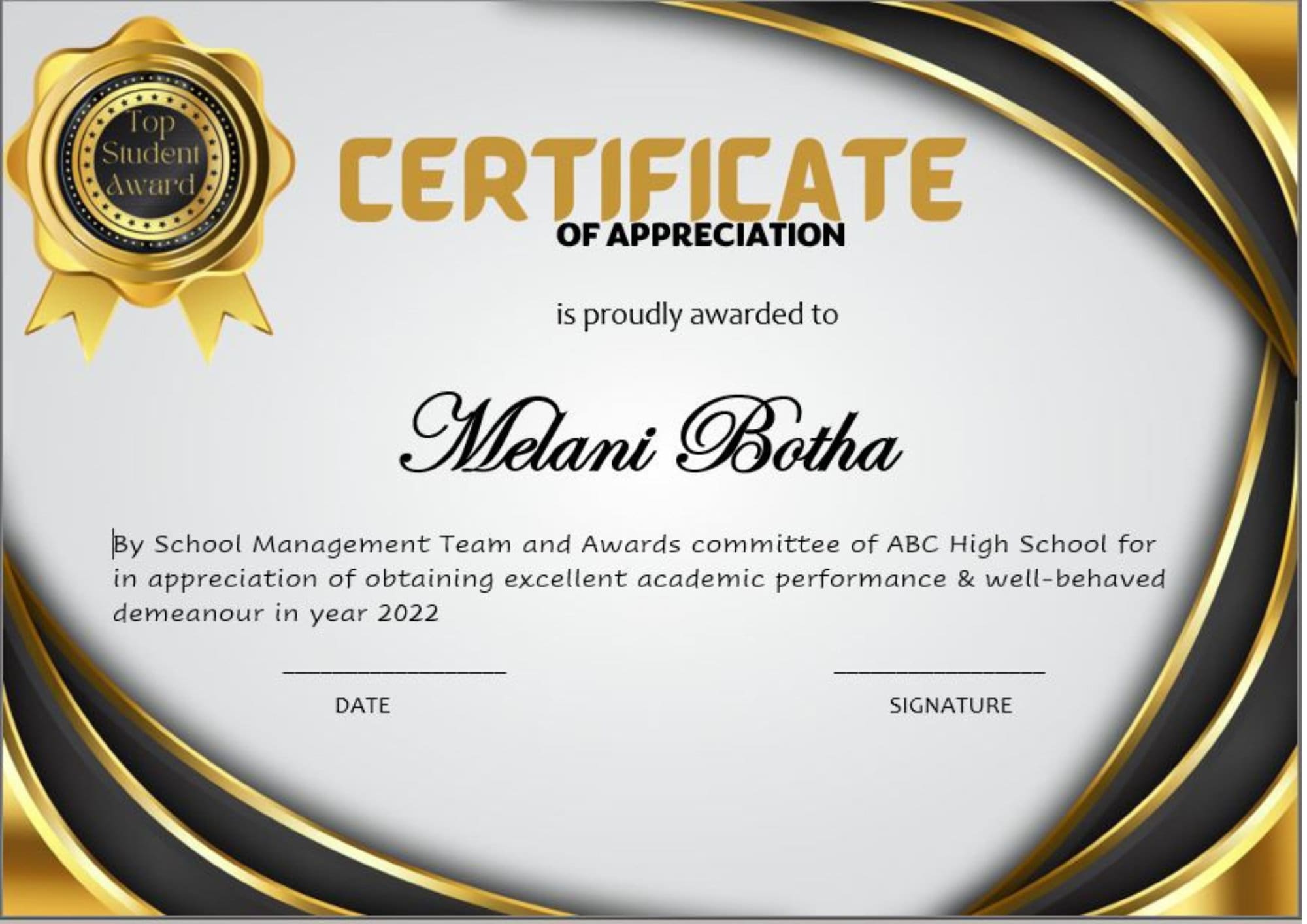 Student Award Certificate Template
