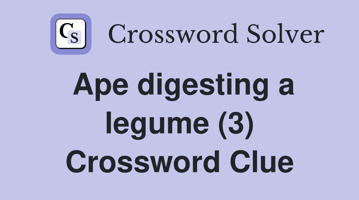Ape digesting a legume (3) Crossword Clue Answers Crossword Solver