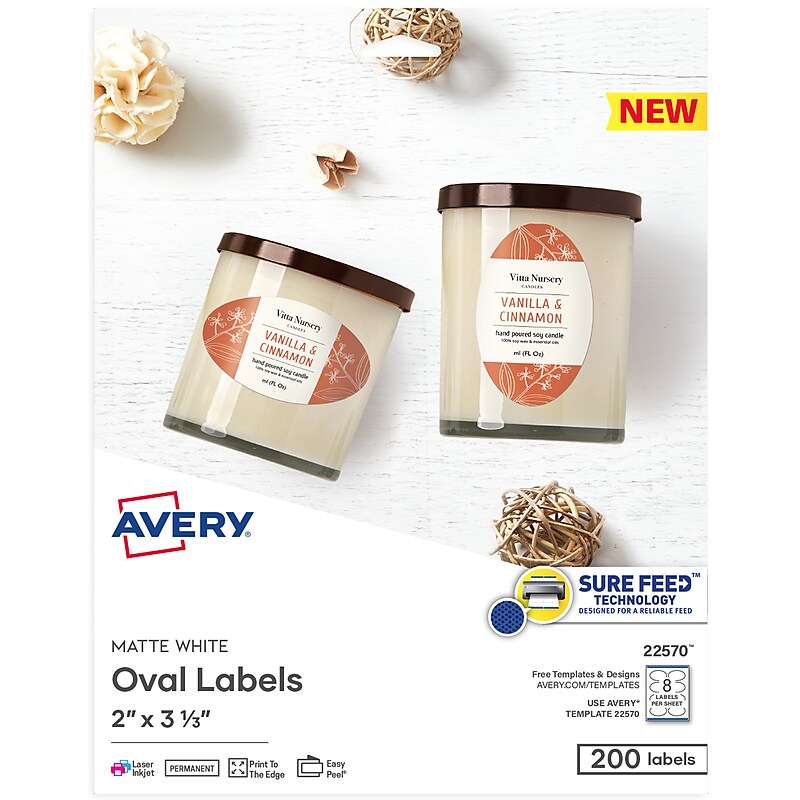 Avery Print to the Edge Laser/Inkjet Oval Labels 2 quot x 3 1/3 quot White