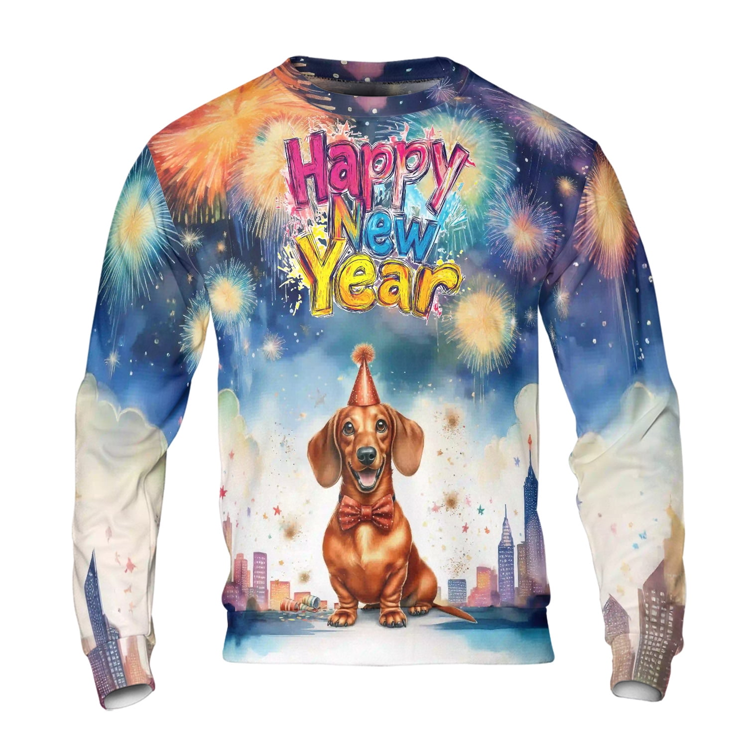 Happy New Year with Dachshund Fireworks Holiday Xmas Winter 2025 All