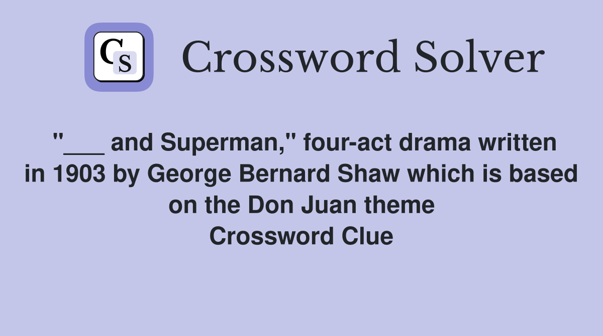 and Superman quot four act drama written in 1903 by George Bernard Shaw