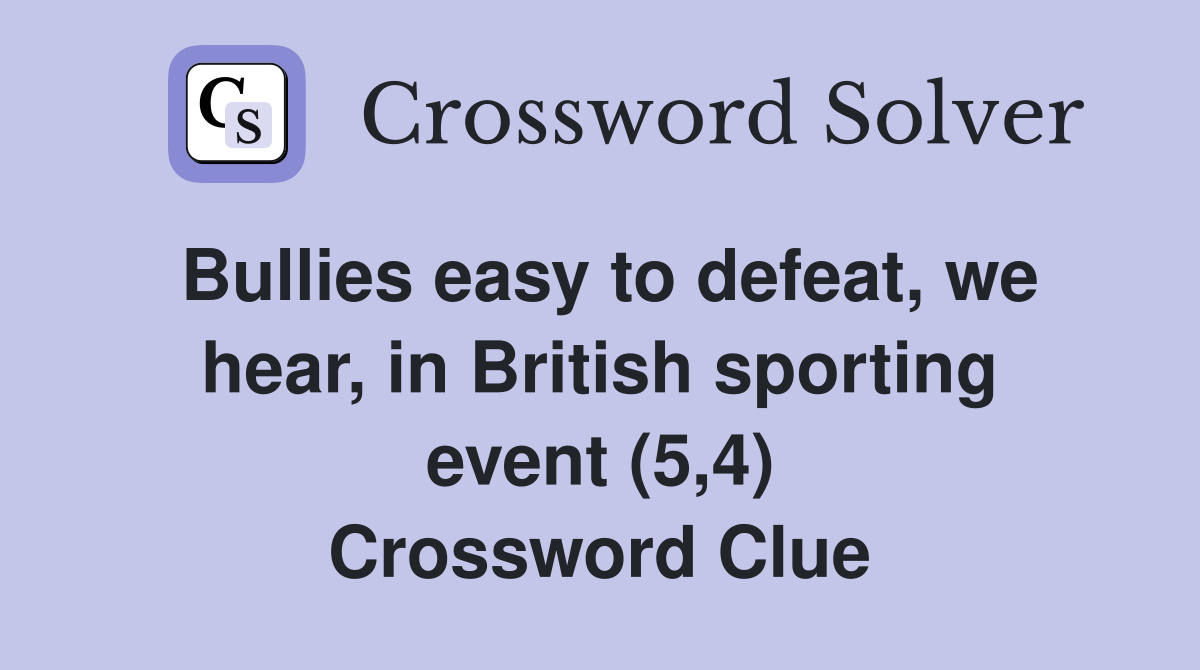 Bullies easy to defeat we hear in British sporting event (5 4