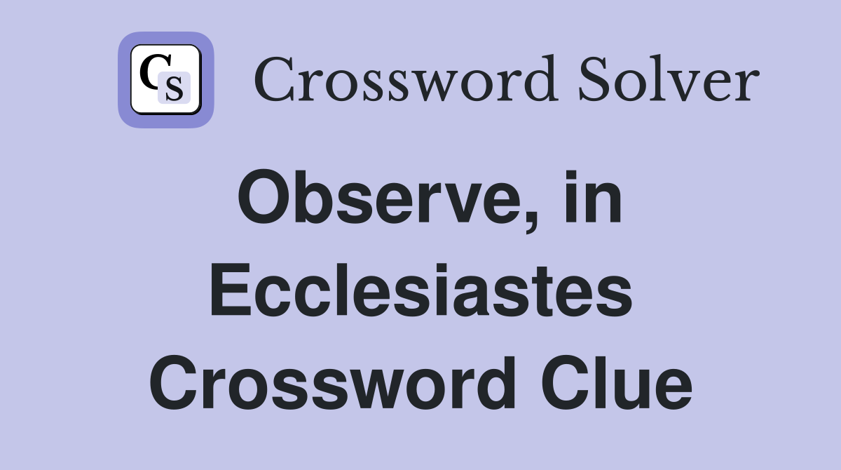 Observe in Ecclesiastes Crossword Clue Answers Crossword Solver