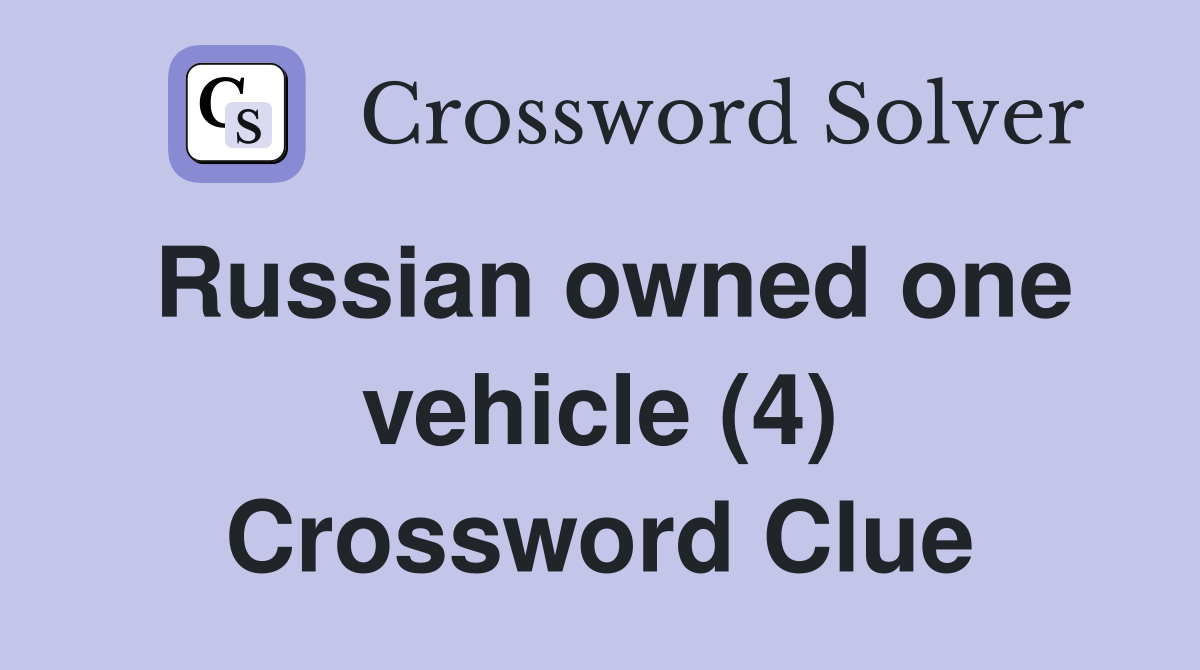 Russian owned one vehicle (4) Crossword Clue Answers Crossword Solver