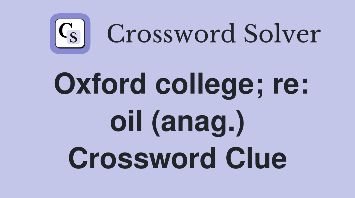 Oxford college re: oil (anag ) Crossword Clue Answers Crossword Solver