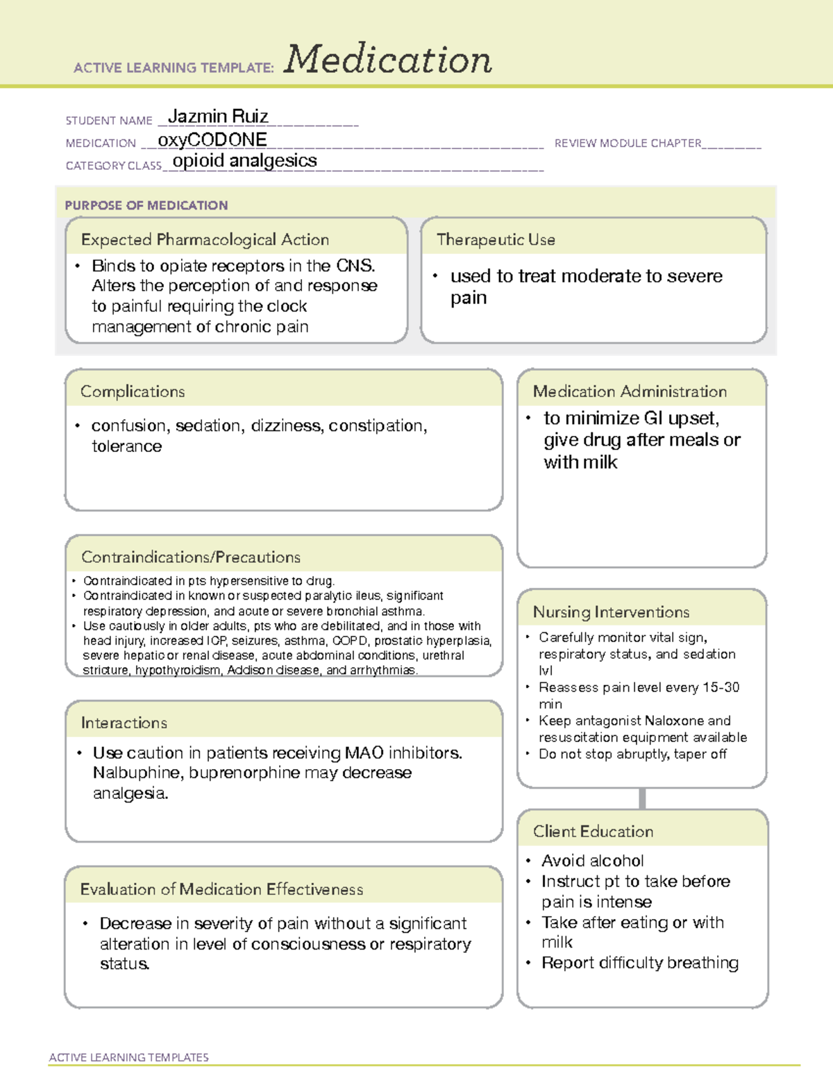 Oxycodone Oxycodoen medication template ACTIVE LEARNING TEMPLATES