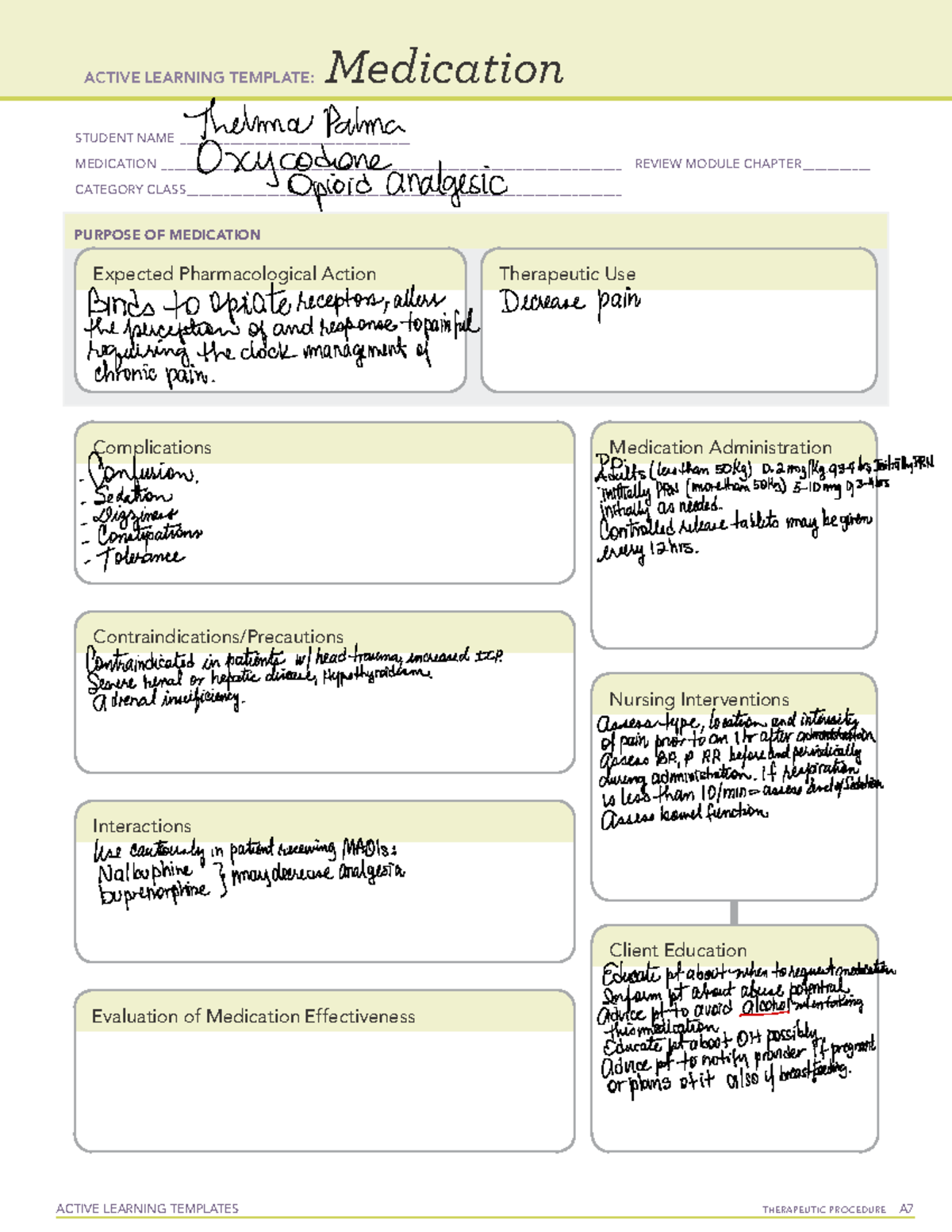 Medication Template Oxycodone HCl Active Learning Notes Studocu