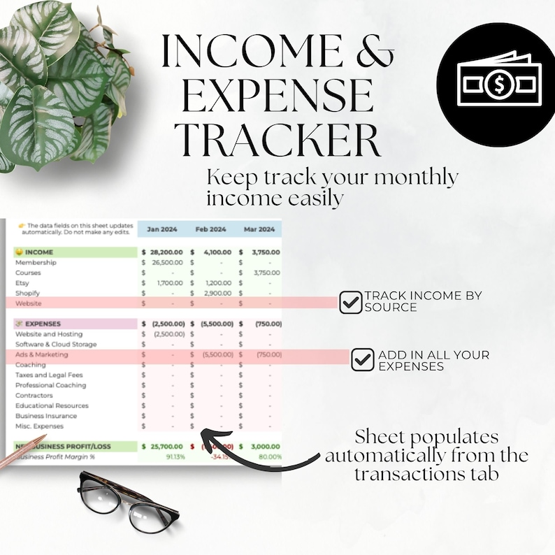 Printable Profit Loss Form (Google Sheets) Designs By Blue Star
