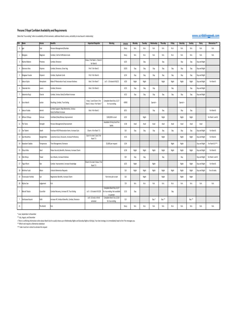 Please Actual (confidant) Calendar for P5R : r/Persona5