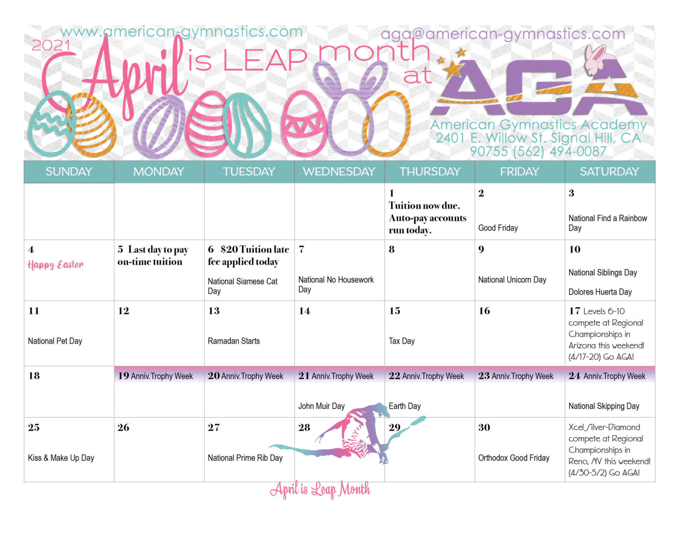 Pa Gymnastics Calendar Preschool Calendar Printable