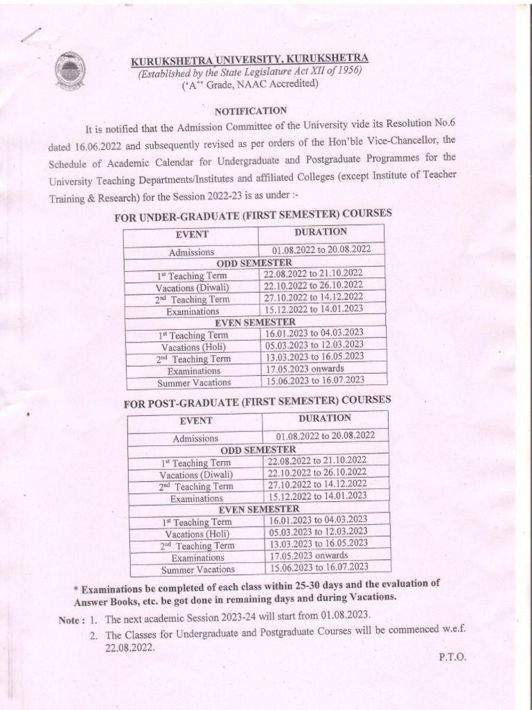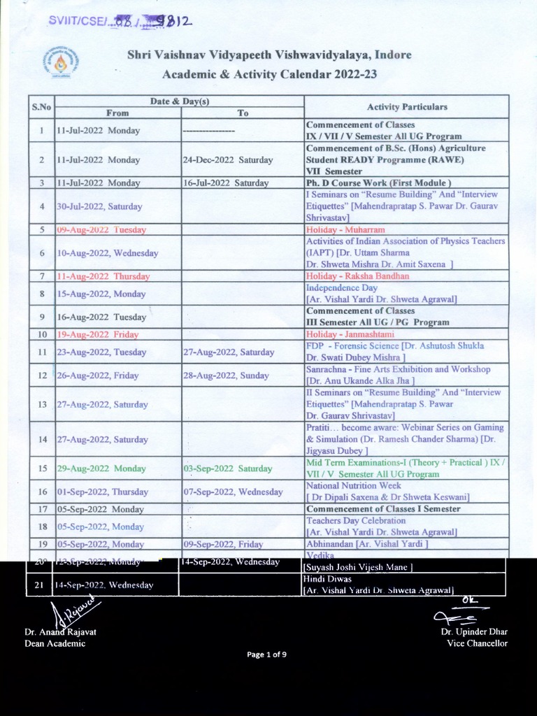 Academic Calender ODD SEM 2022 23 Download Free PDF Academia