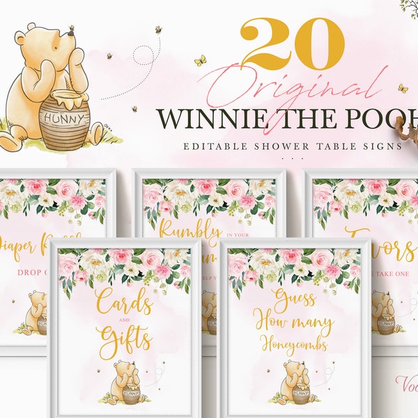 Pacifier Hunt Baby Shower Game classic Winnie the Pooh Sign honey Baby