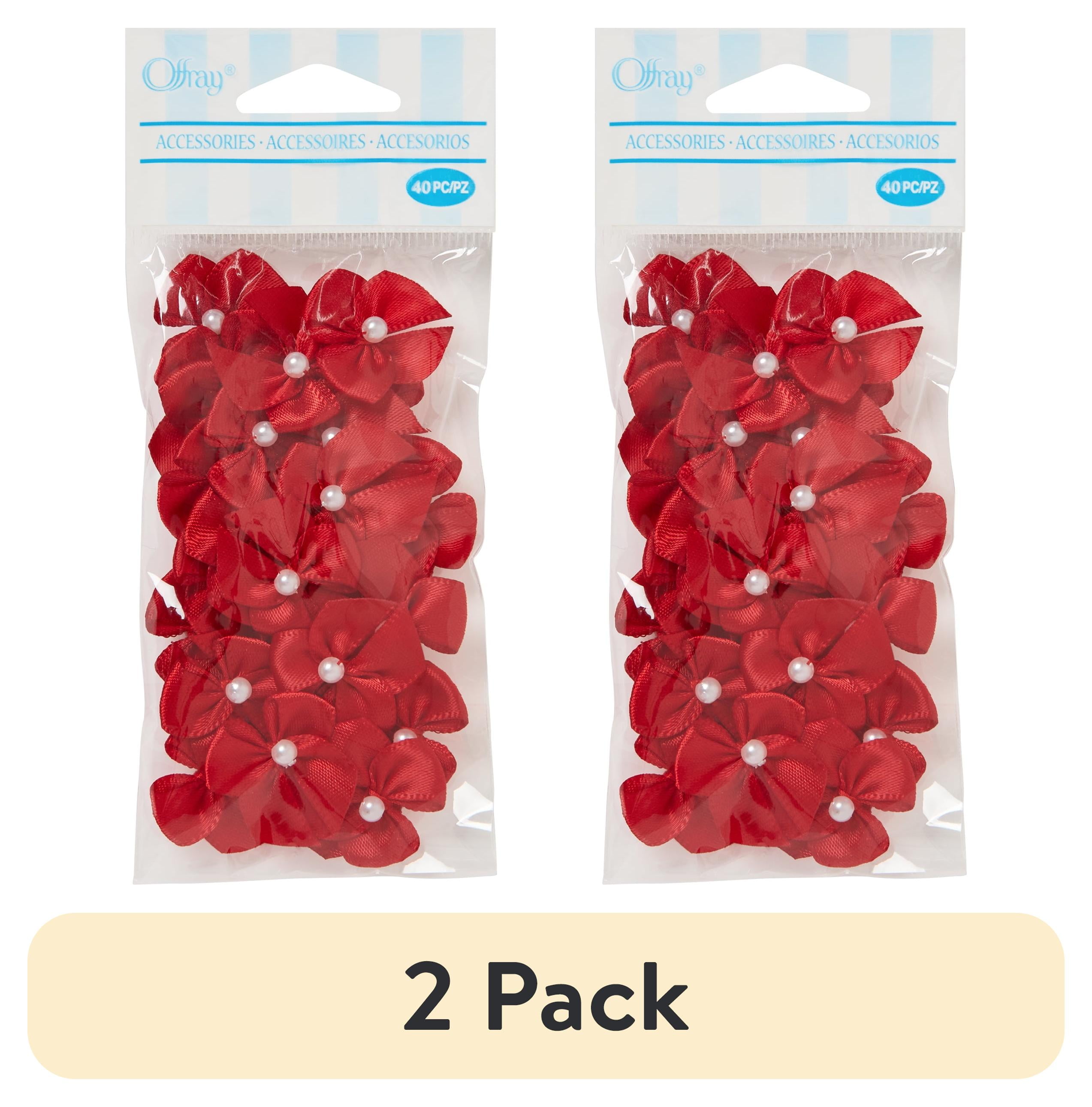 (2 pack) Offray Embellishment Red 5/8 inch 2 Loop Bow with Pearl