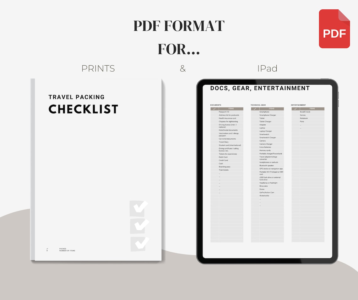Travel Packing List packing Checklist Printable Template Digital