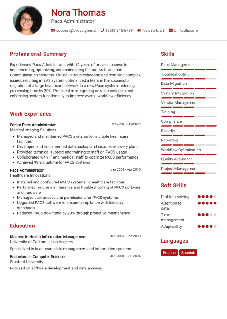 PACS Administrator Resume Example for 2024: Tips to Stand Out