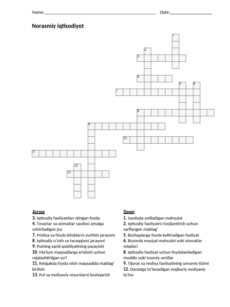 crossword puzzle PDF